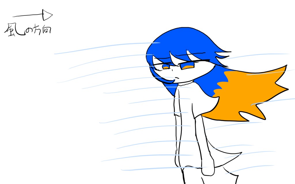 例えば風が右から吹いていると右側に線を描く、みたいな感じです。こんな風に↓