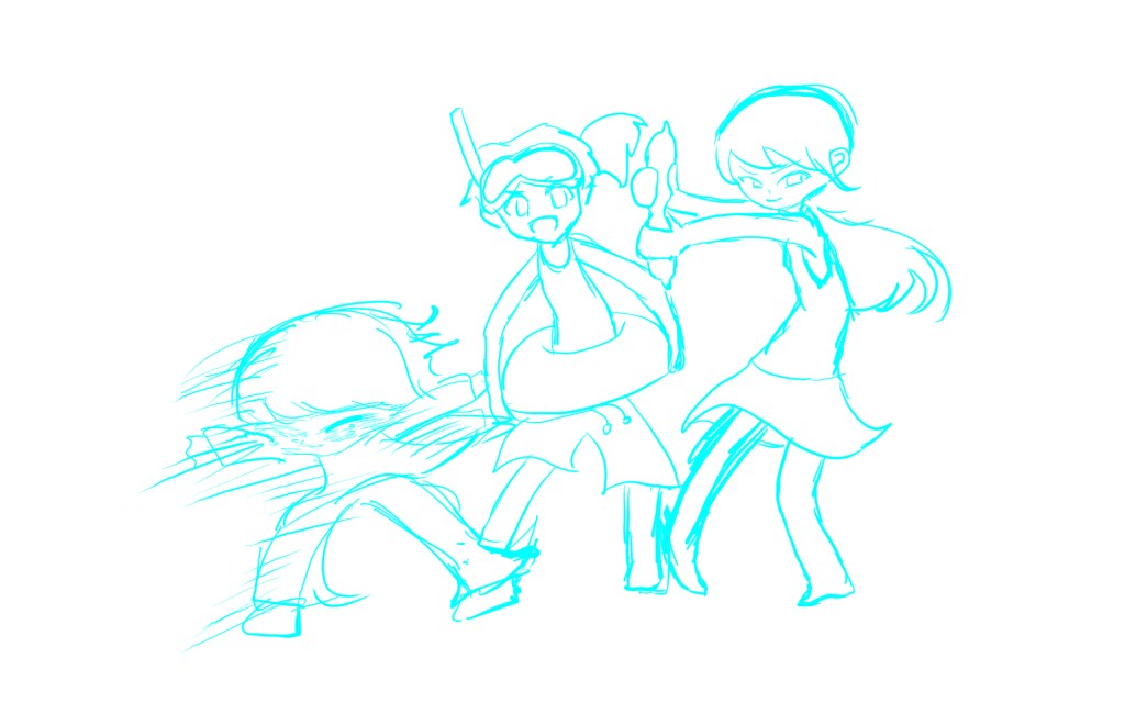 スピード感出したいときは、髪とかを大胆にヒラヒラさせるといいかもね。大胆に、だからね?少しだと、スピード感出したくても出せないからね?少しだと、絵が固まって見えるからね?